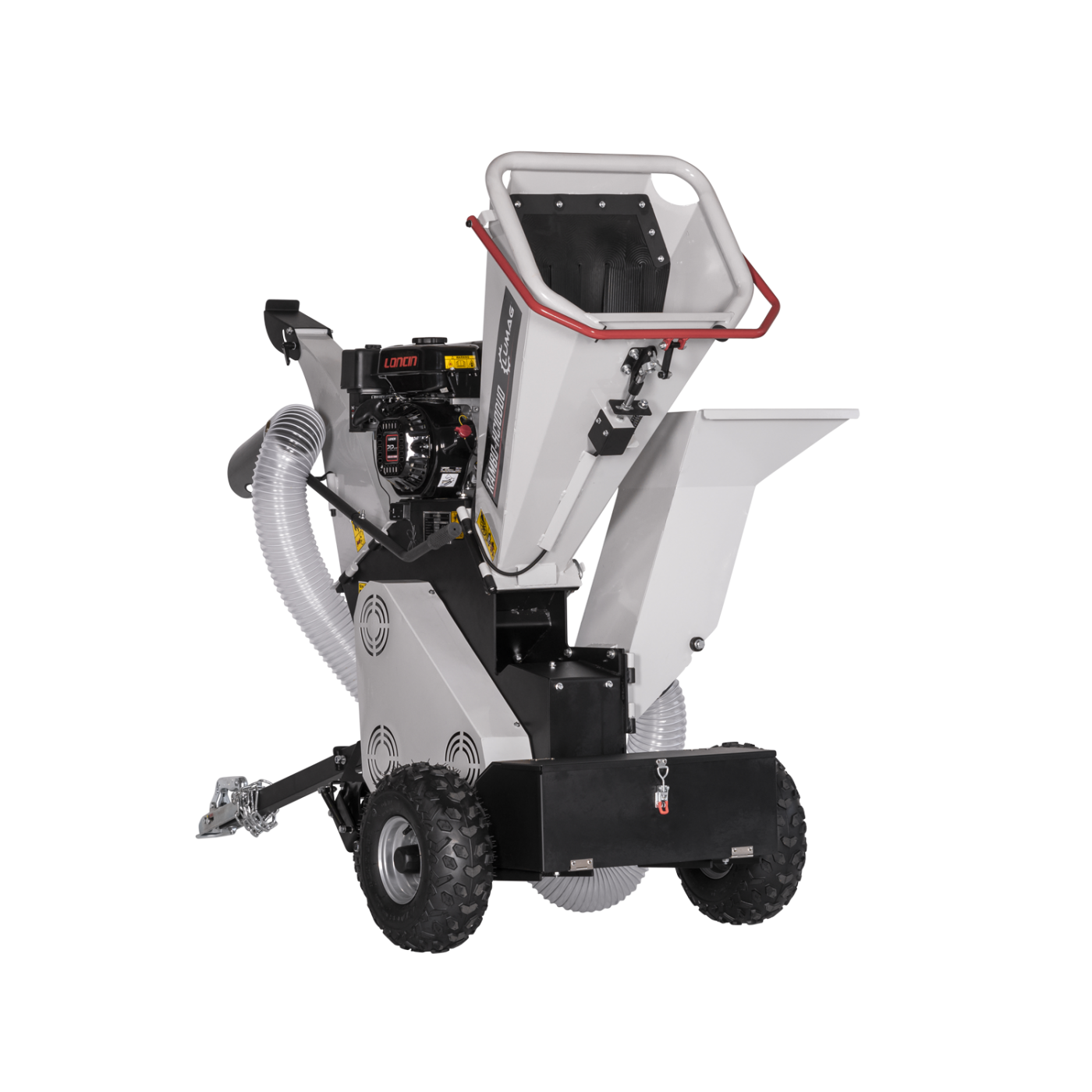 Wydajny, uniwersalny, a jednocześnie kompaktowy rozdrabniacz Lumag HC10DUO wyposażony w silnik benzynowy o mocy 7,0 KM / 212 cm³ i duży bęben rozdrabniający Duplex z podwójnym lejem zasypowym i wężem ssącym.