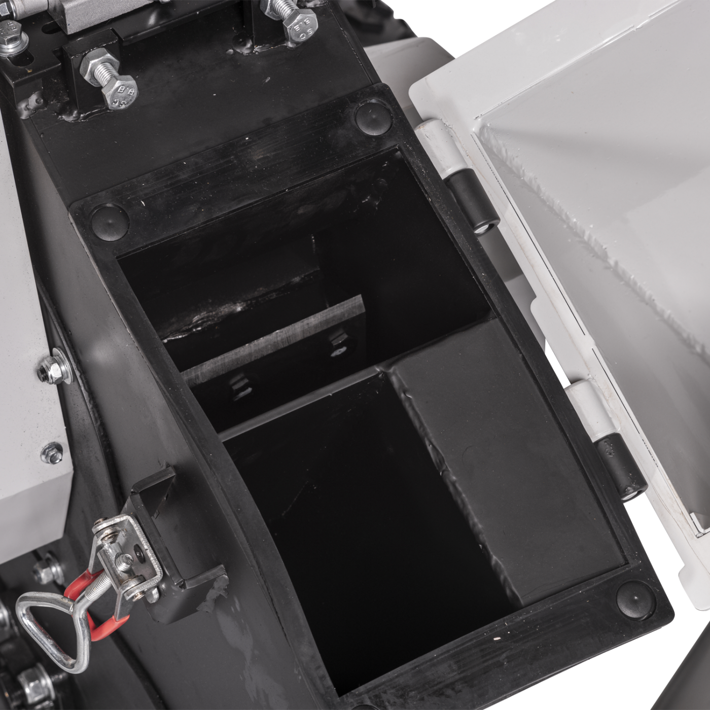 Mniejszy lej zasypowy może być używany na przykład do liści i resztek. Za pomocą węża ssącego można odkurzać liście i drobne gałęzie. Materiał zasysany jest rozdrabniany przez 4 ostrza młotkowe i 4 bijaki.