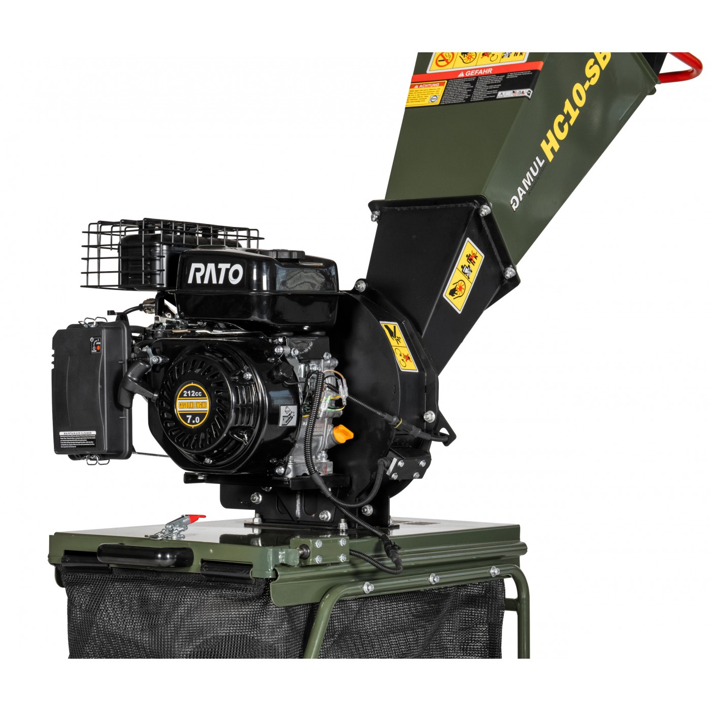 Rębak tarczowy spalinowy GAMUL-HC10SB marki Lumag Germany z mocnym i wydajnym silnikiem 5,5 KM pozwala na rozdrabnianie gałęzi o grubości do 60 mm.