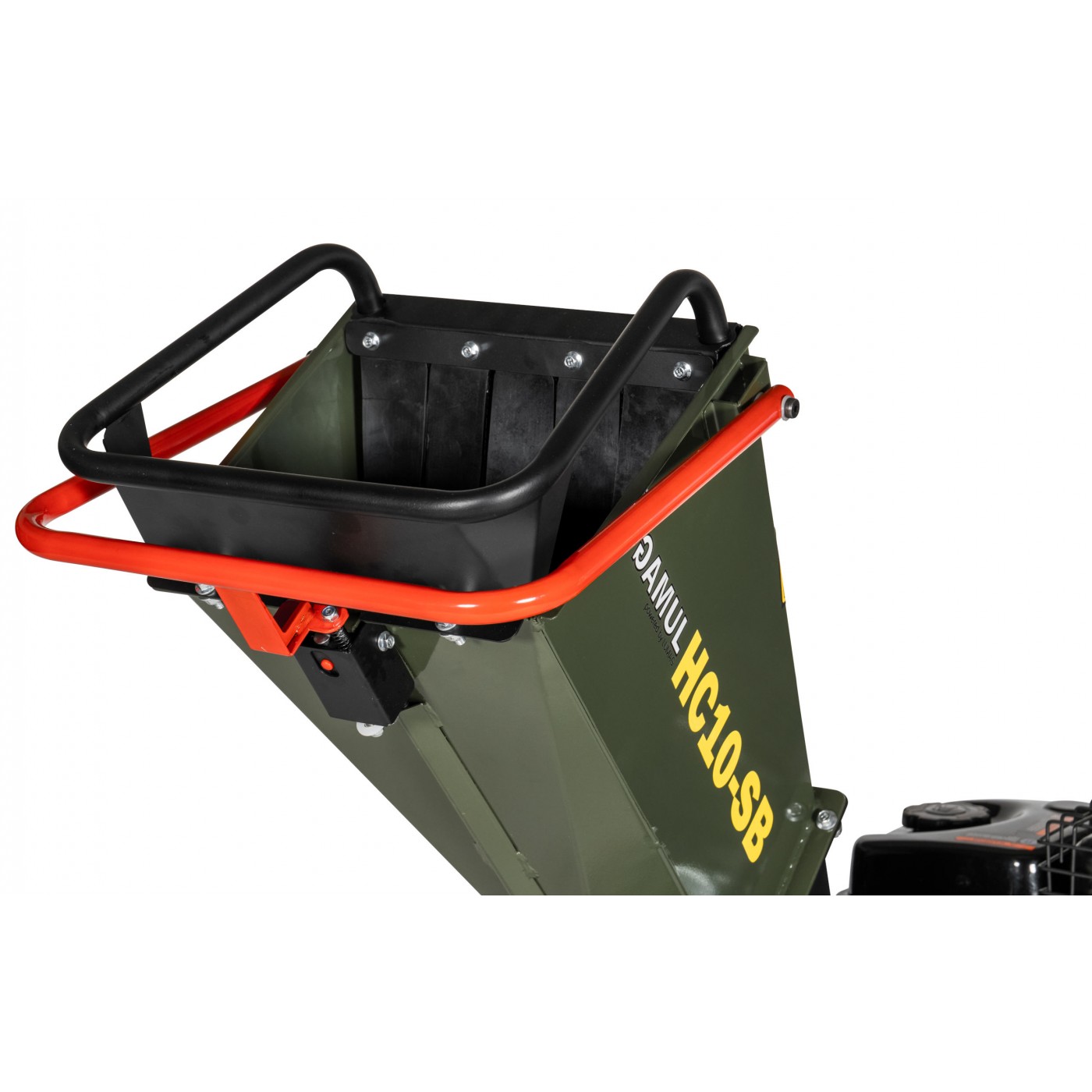Duży lej zasypowy zapewnia wygodną obsługę, a duży, wyjmowany kosz na ścinki umożliwia łatwe i szybkie usuwanie rozdrobnionego materiału. Lej zasypowy można odchylić na bok w celu czyszczenia lub wymiany noży. GAMUL-HC10SB to idealny rębak do użytku prywatnego w małych ogrodach.